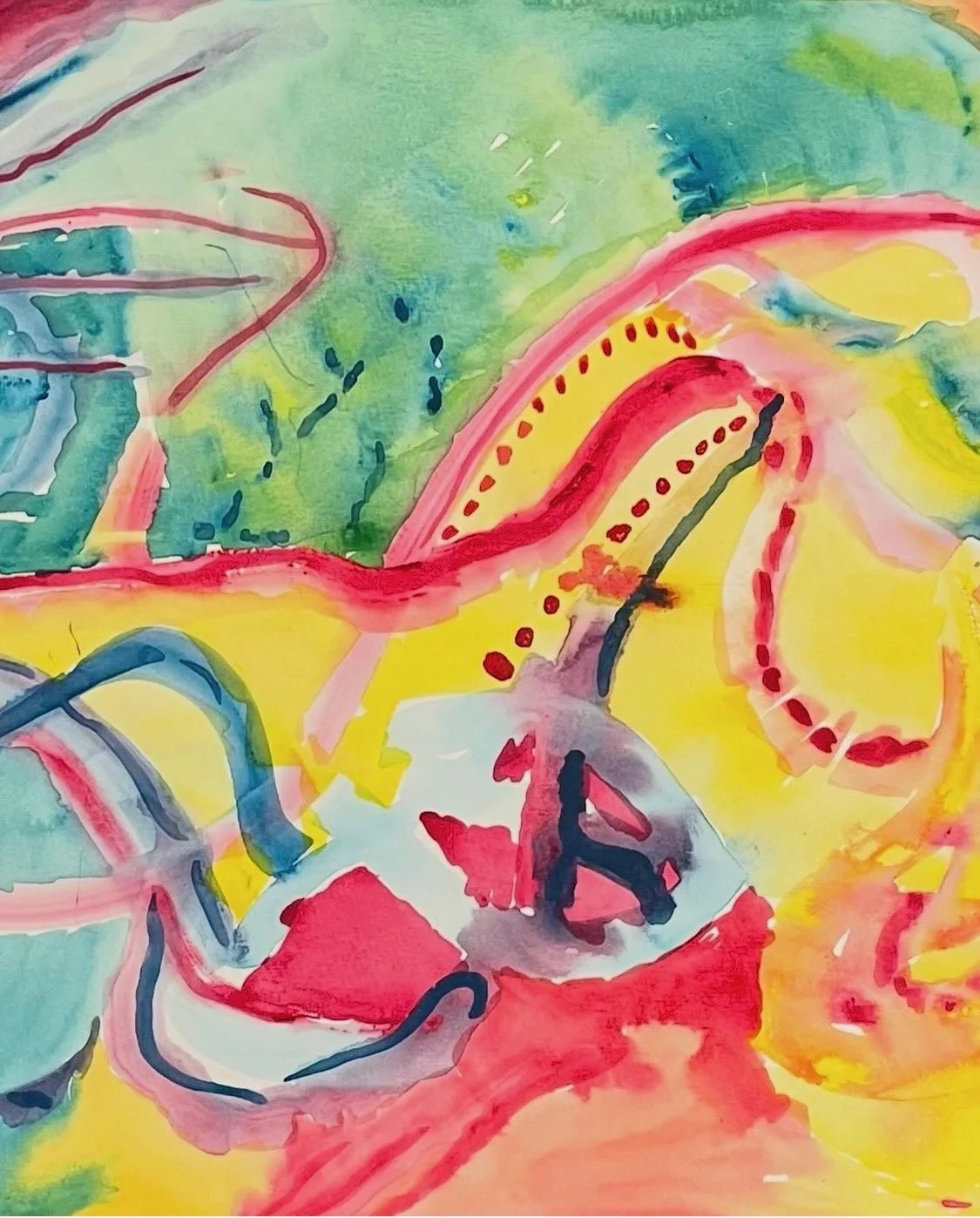 You are exploring various shapes and becoming aware of your own response to them. You are tuning in to their relevance to your artwork, and to your own voice that is expressed using paints.